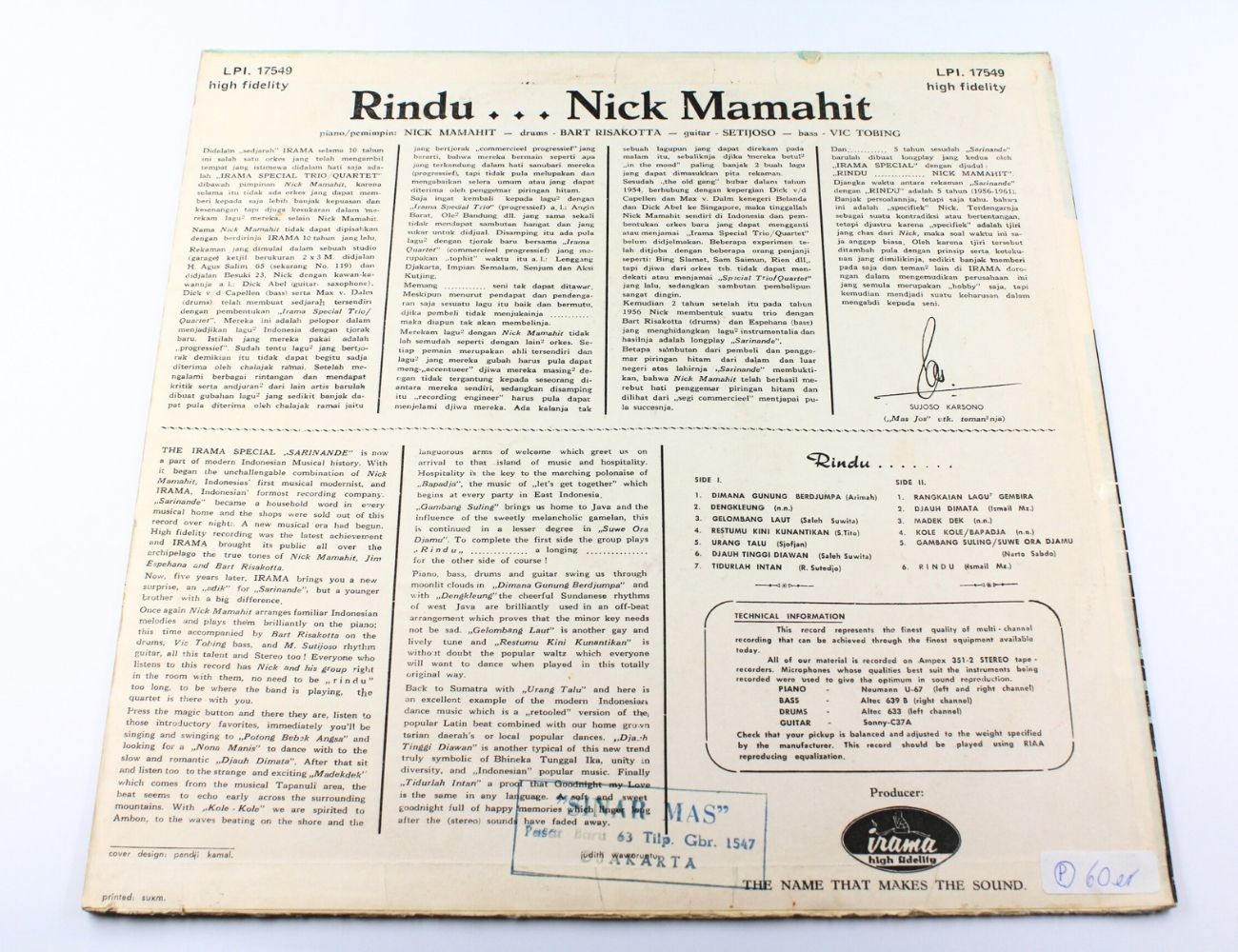CHF 30.00Nick Mamahit & Trio - Rindu