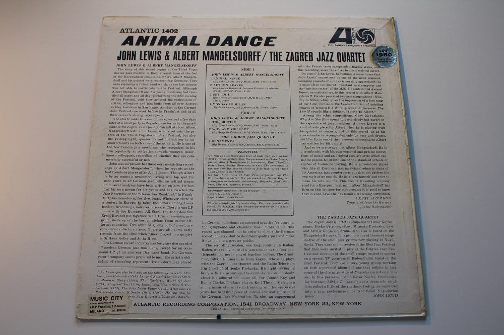 CHF 180.00John Lewis & Albert Mangelsdorff & The Zagreb Jazz Quartet - Animal Dance